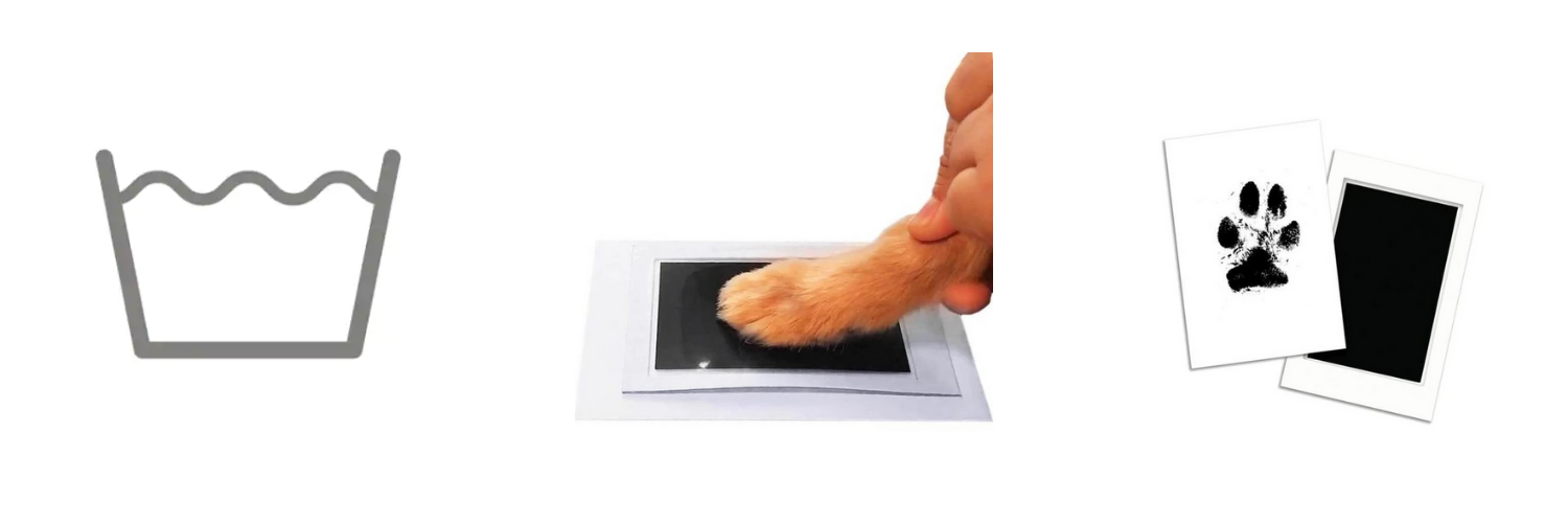It’s good to know that our Paw Print Pad is mess free! Sometimes when keeping a memory of a pet’s paw, many will turn to using real paint and paper. This leaves such a MESS because it's so hard to remove the paint from your dogs when all they want to do is run away. Instead, we provide you with a paint-free way of getting your pets paw print. We use oil-based ink that sits under a film on which your pet can step on. Once you pick up there paw, there is no messy only a printed paw on a white card.